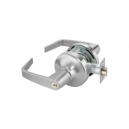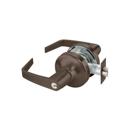 This lever is a popular brand of medium duty commercial/heavy residential grade II. The lever unlocks with key outside and locks/unlocks with push & turn button on the inside. Each lock comes with 2 keys furnished. The lock cylinder by Medeco insures complete key control.
